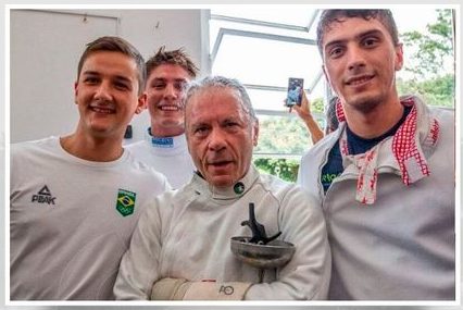 Dickinson enfrentou os esgrimistas paranaenses Pedro Petrich e Alexandre Camargo, mas não conseguiu vencer. No entanto, o espírito esportivo prevaleceu e ele autografou seu uniforme, que será leiloado para apoiar escolas públicas de esgrima.